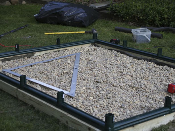 1. Greenhouse kits require a simple foundation, basically a perimeter of landscape timbers with a gravel floor. Based on the measurements given in the kit, make a square, level perimeter of 4x6 landscape timbers